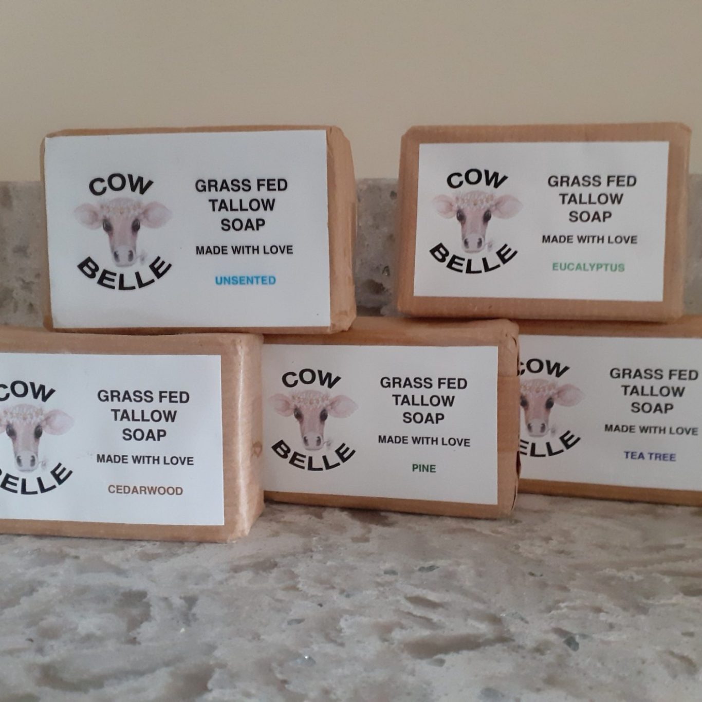 Our Cow Belle products are made with locally sourced animal fats from grass-fed cattle that are purified to eliminate any scent or taste. We often whip the tallow creating a cream that is light on your skin.